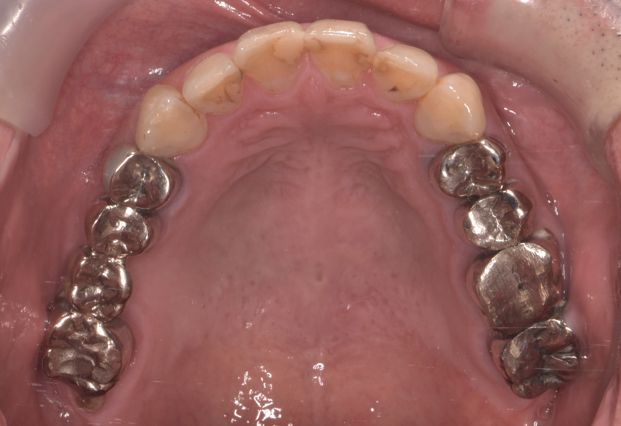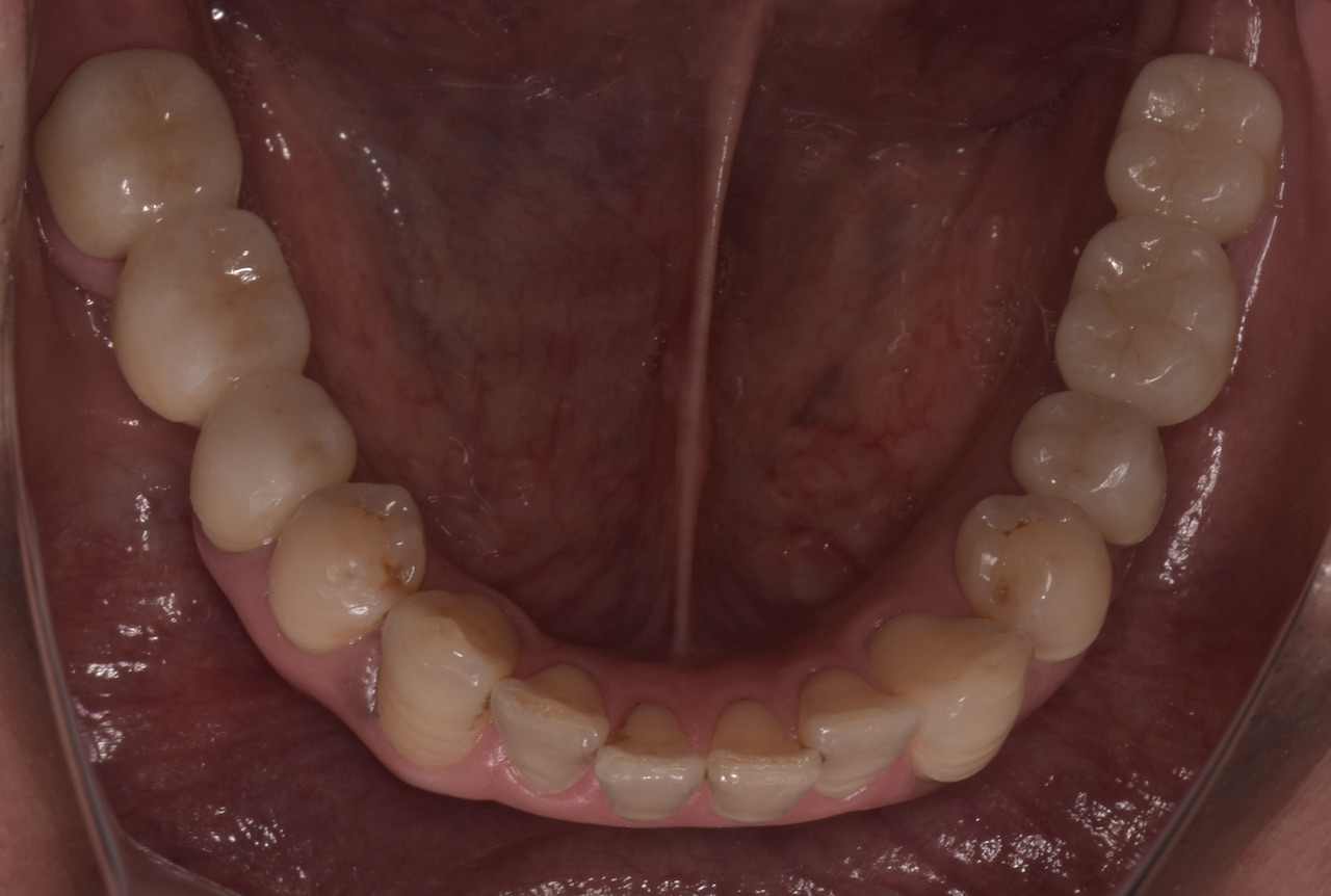 この患者さんは50代の男性で、若い時から様々な歯科治療をなさり、それに伴って抜歯をされたり、咬めなくなったそうです。そのなかで徐々に咬む位置がが分からなくなってきたとい言うお悩みで名取歯科医院にご来院されました。