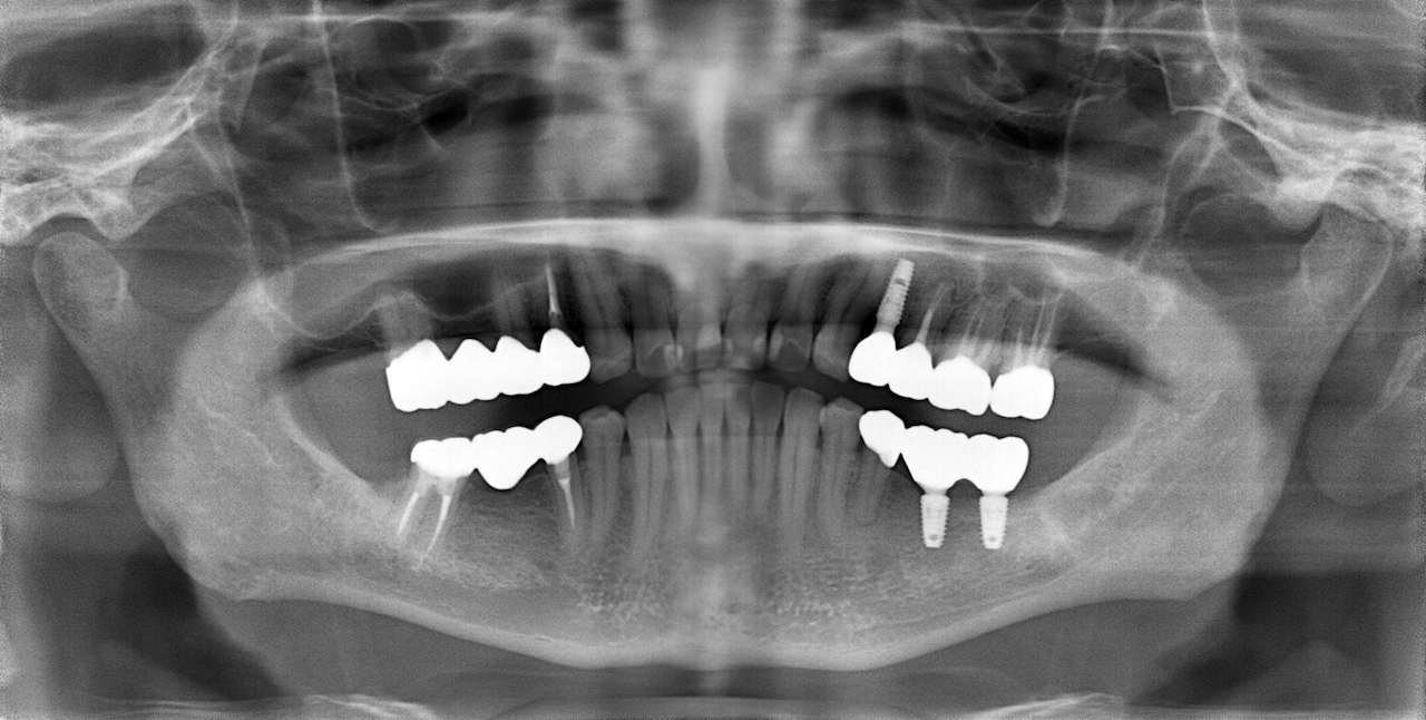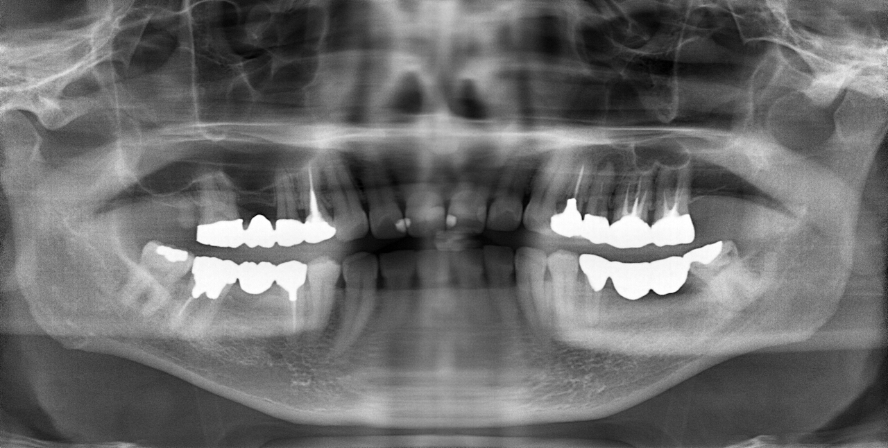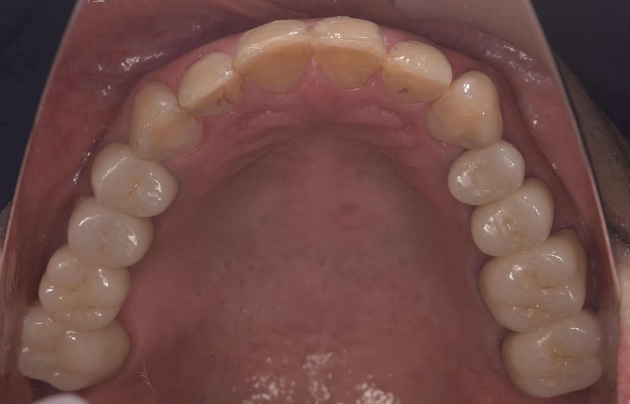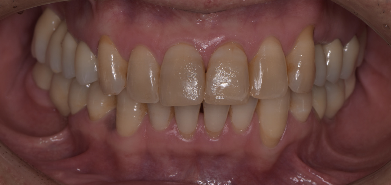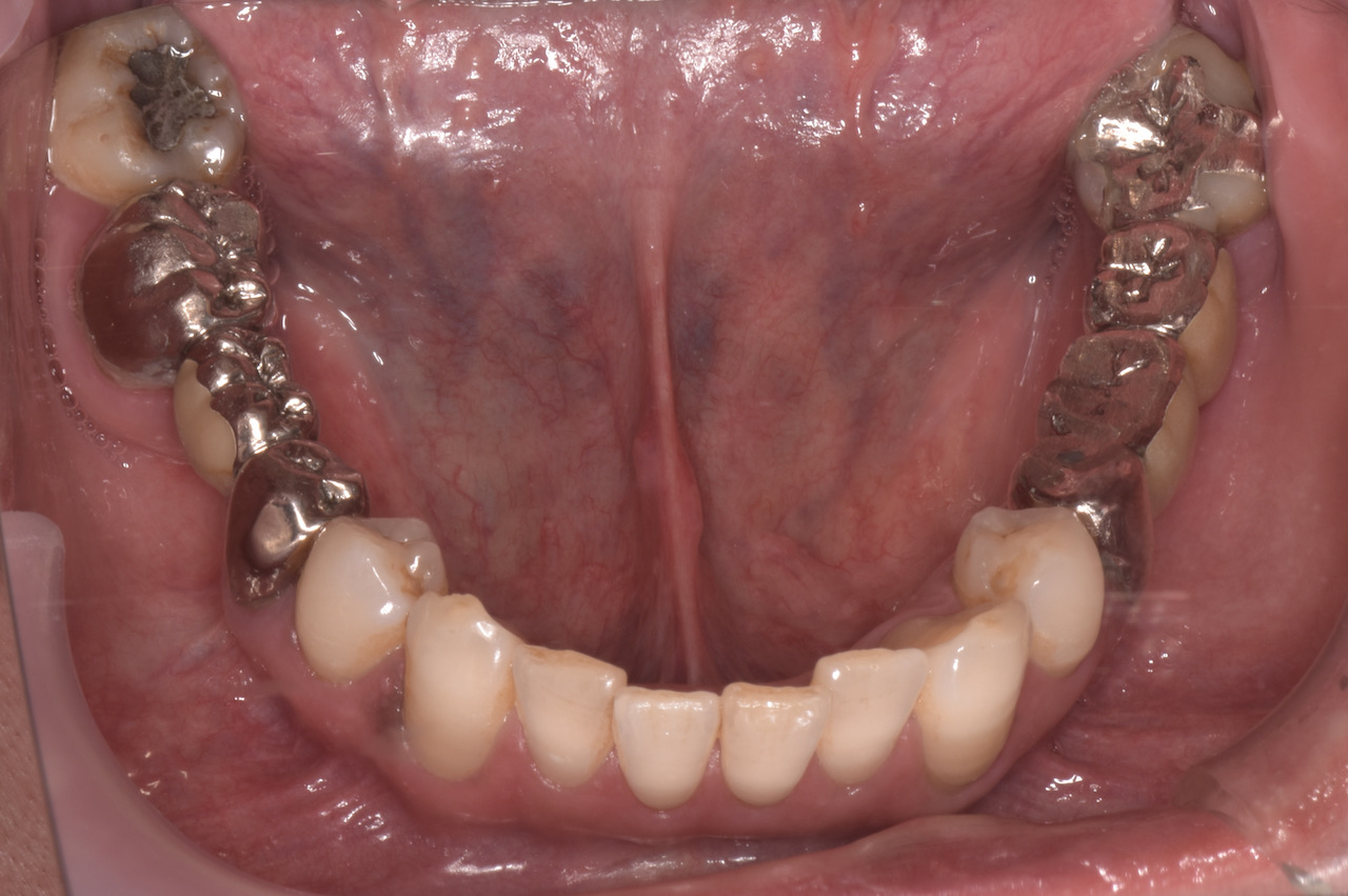 全顎的に複数の治療部位で、インプラント・ブリッジ・ダイレクトボンディング・セラミッククラウンなど、適切な治療方法を組み合わせて包括的な治療を進めました。