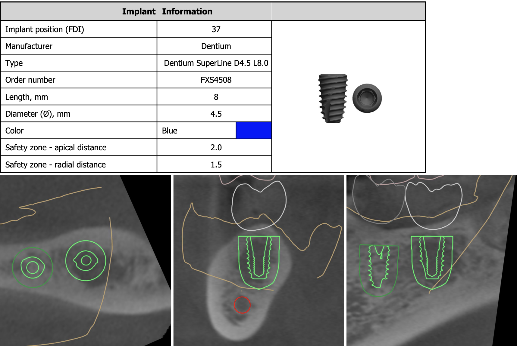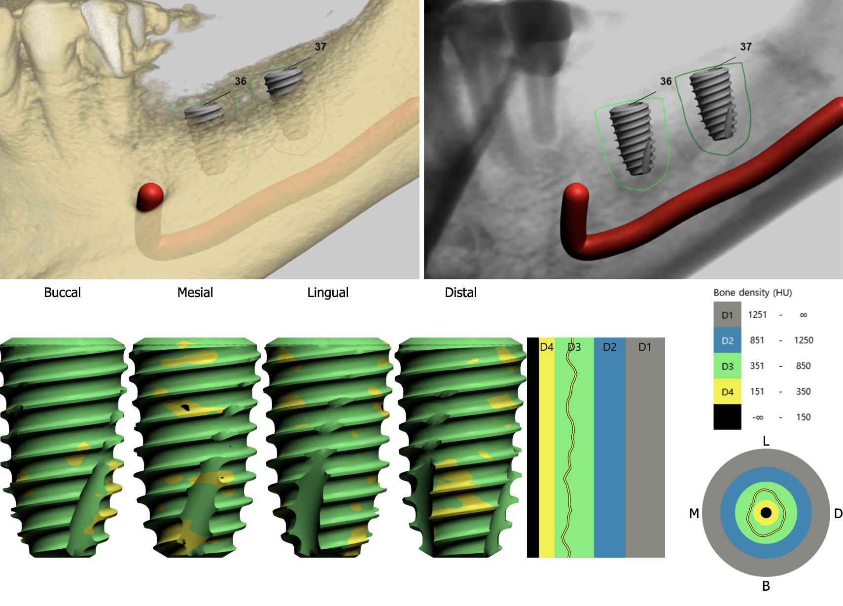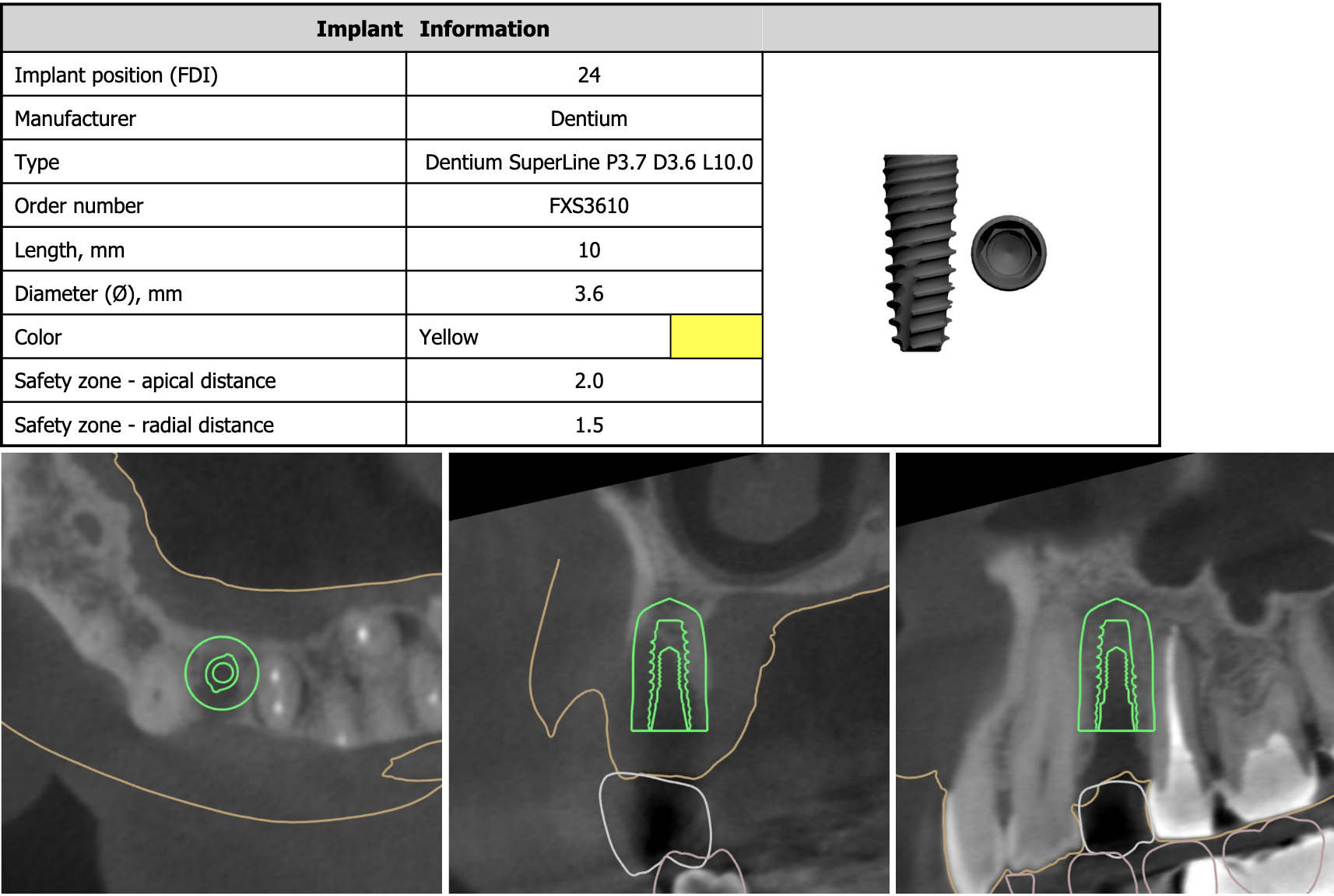 この「T-scan」はインプラント治療にも応用できる点が他の計測装置との違いの一つです。「I-24」と表示されているのはインプラントが埋入されている表記で、そこに他の歯と同じ力が掛かっている事を示しています。これは通常のリボン紙(咬合紙)では全くわかりません。このように天然歯、補綴歯、インプラント治療歯の力の違いを把握すれば、インプラントに掛かる力による治療後のトラブルを回避出来ると考えます。